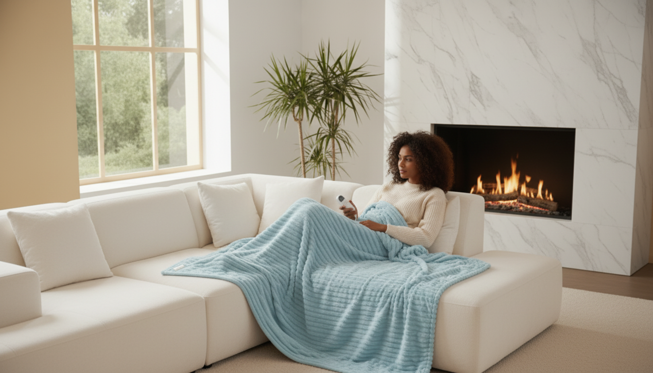 Striped Flannel Heated Blanket – Extra Soft & Fast Heating